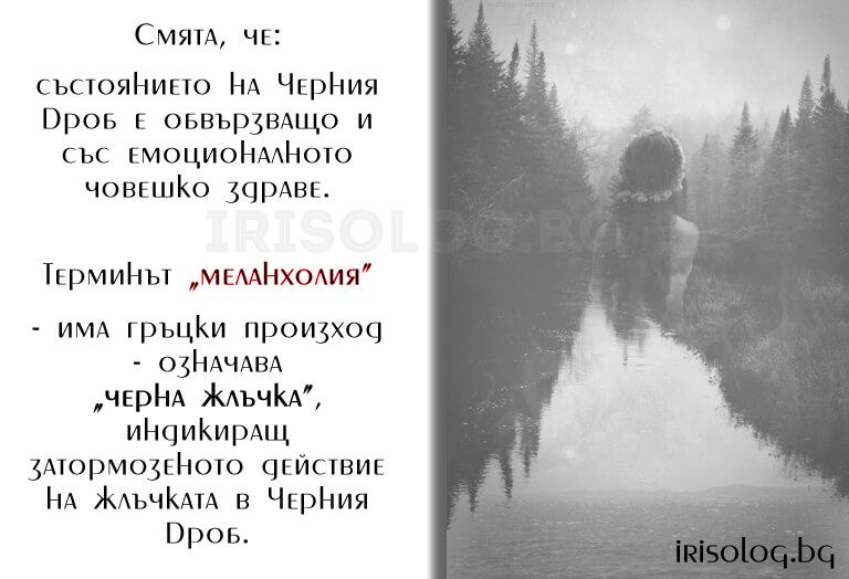 В древна Гърция са лекували емоционалните проблеми с третиране на Черния Дроб. Терминът „меланхолия” има гръцки произход и означава „черна жлъчка”, индикиращ затормозеното действие на жлъчката в Черния Дроб.