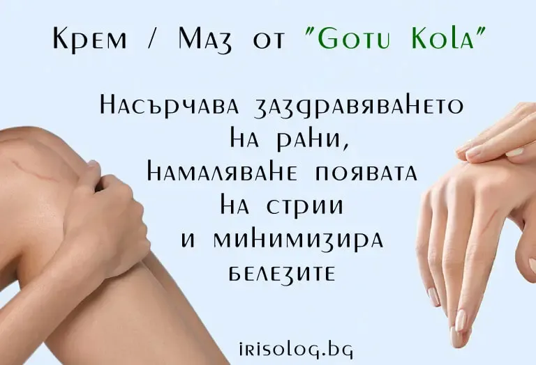 - Нанасяйте маз, съдържащ 1% екстракт от “Gotu Kola”, върху засегнатата област няколко пъти на ден в продължение на 6 до 8 седмици.