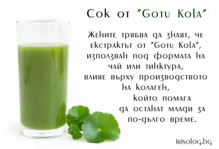 Жените трябва да знаят, че екстрактът от "Gotu Kola", използван под формата на чай или тинктура, влияе върху производството на колаген, който помага да останат млади за по-дълго време.
