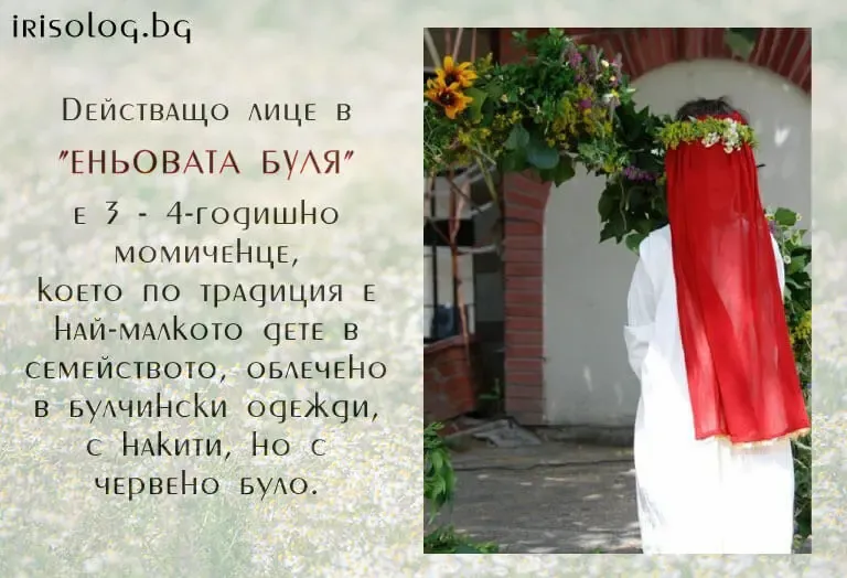 В него основното действащо лице е "Еньовата буля", в чиято роля се превъплъщава 3-4-годишно момиченце, което по традиция е най-малкото дете в семейството или така наречения изтърсак, облечено в булчински одежди, с накити, но с червено було.